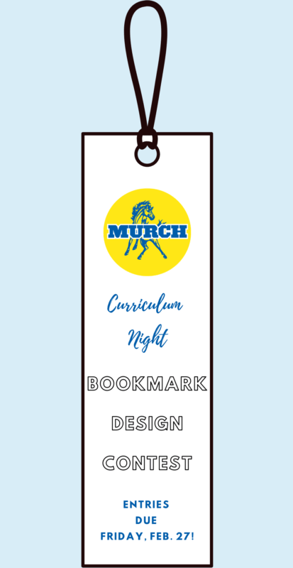 Calling all student artists! If your student plans to enter the Bookmark Design Contest, please remember that all entries are due by Friday, February 27. Designs should be submitted in the collection box located in the Welcome Center.
